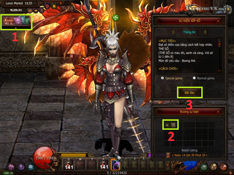 - Để tham gia sự kiện MU Rommy, bạn hãy thu thập các mảnh thẻ bài, mỗi khi thu thập được 24 mảnh, bạn sẽ có cơ hội nhận được 1 thẻ chơi MU Rommy. Để chơi bạn hãy click vào hòm đồ sự kiện góc trái trên cùng màn hình game: